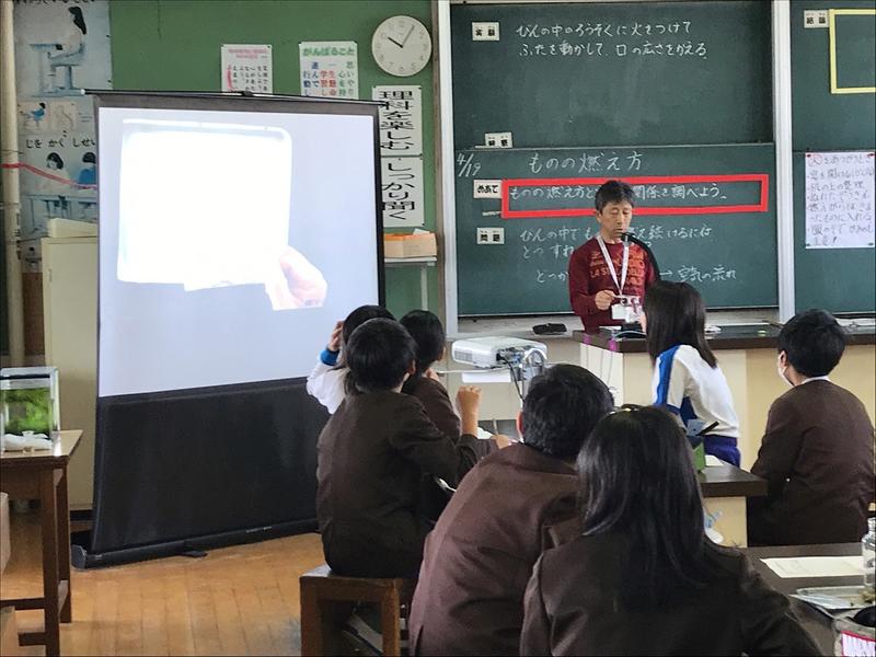 火を使いますので、使い方を大きくうつし出し、説明がありました。
