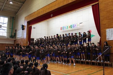 最後を飾ったのは、今日の主役6年生。6年生は、寸劇「5分で振り返る平成」合唱「旅立ちの日に」です。寸劇は笑いを入れながら、楽しい発表でした。