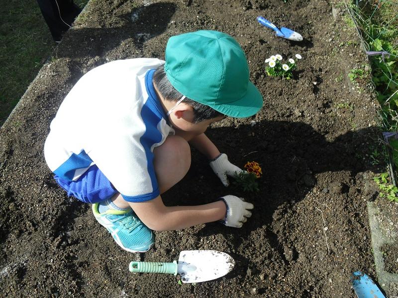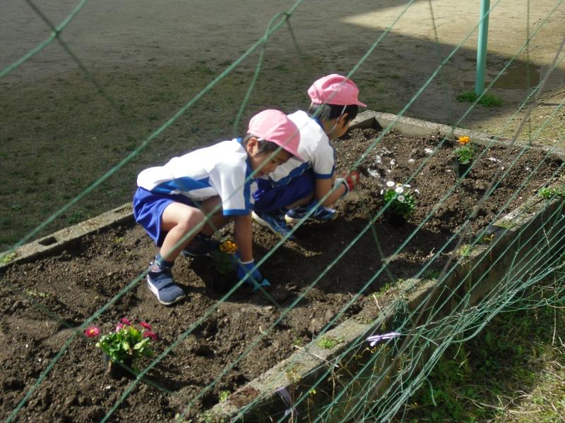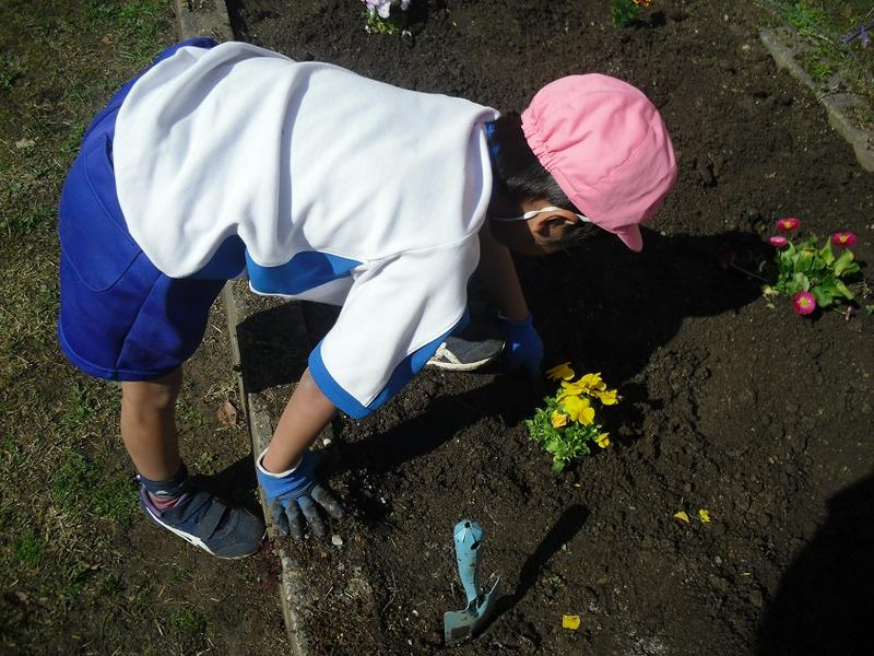 スコップで耕したり、草を取ったり自分たちの花壇を大切にしている様子がよく分かりました。