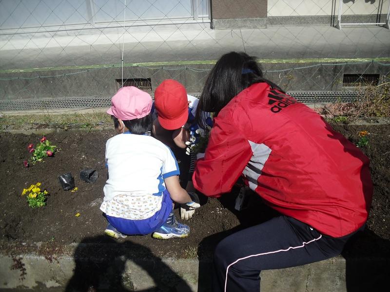 「先生、スコップが重いです。」と言いながらも、楽しく活動を行っていました。この後は、パンジーなど、春の草花を植えるそうです。花の生長を心待ちにすることでしょう。