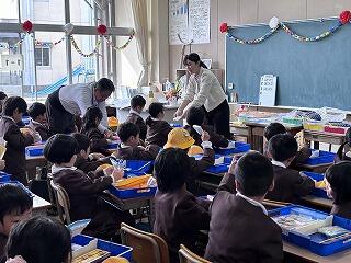 本日、1年生は初めての学習を行いました。各クラスでランドセルの使い方や机の引き出しの使い方について学び、児童たちはしっかりと話を聞いて座っている姿が見られました。