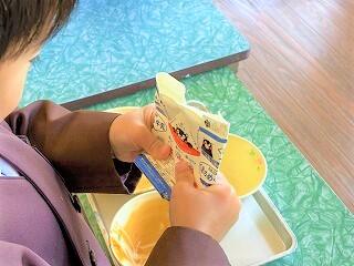 1年生は給食が始まって1週間がたちました。片付けも上手にできるようになっていました。