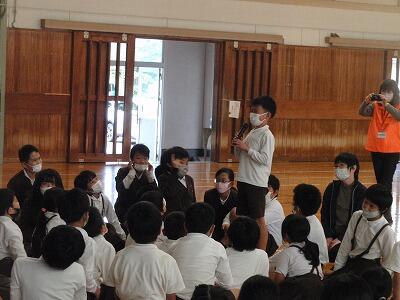 1年生の子どもたちも、中学生のお兄ちゃんお姉ちゃんたちにごあいさつします。