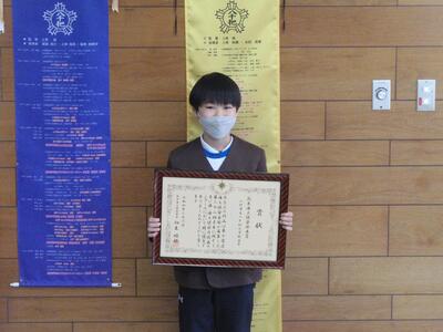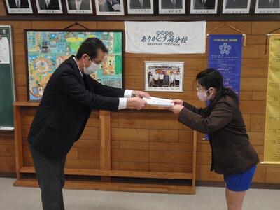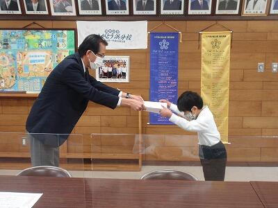 今日のお昼休みに、なんと!作曲で入賞した児童の表彰が校長室で行われました。