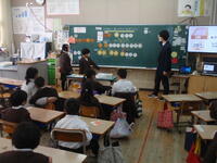 1年生の教室では、お金を使って算数の勉強をしていました。