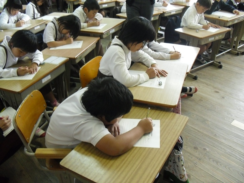 自分の考えを一生懸命にシートに書いています。スピードや文量が2年生とは思えないくらい、よく表現されていました。