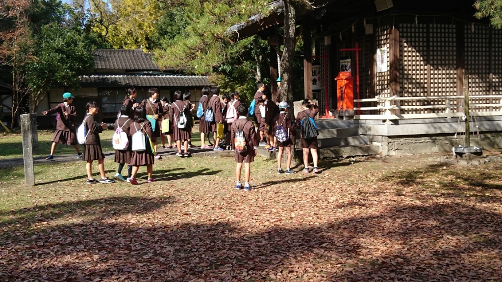 午前中、4時間を使って6年生が史跡巡りに行きました。巡ったところは、博物館、松井神社、松浜軒、八代宮の4か所でした。