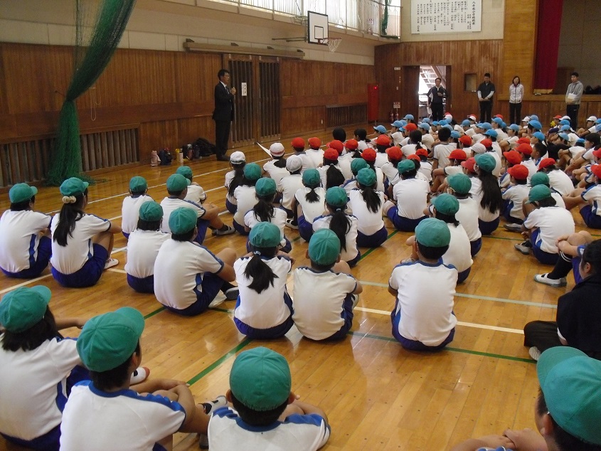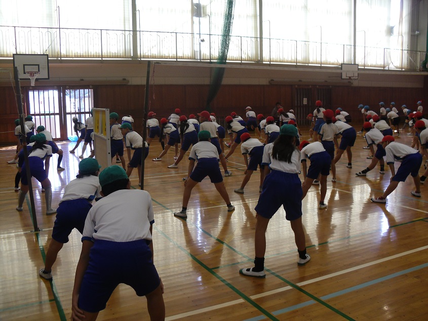 競技が始まる前にトイレに行く子どもたちが、出口に多く集まりました。しかし、トイレに行くためのスリッパがあまりなかったために、出口で立ち往生する子どもがたくさんいました。1人の子どもが、他の出口の前にあったスリッパを持ってきてくれました。校長先生が見ておられて、「○○さん、気が利くね!」とほめられました。さすが、やちわっこと思える場面でした。
