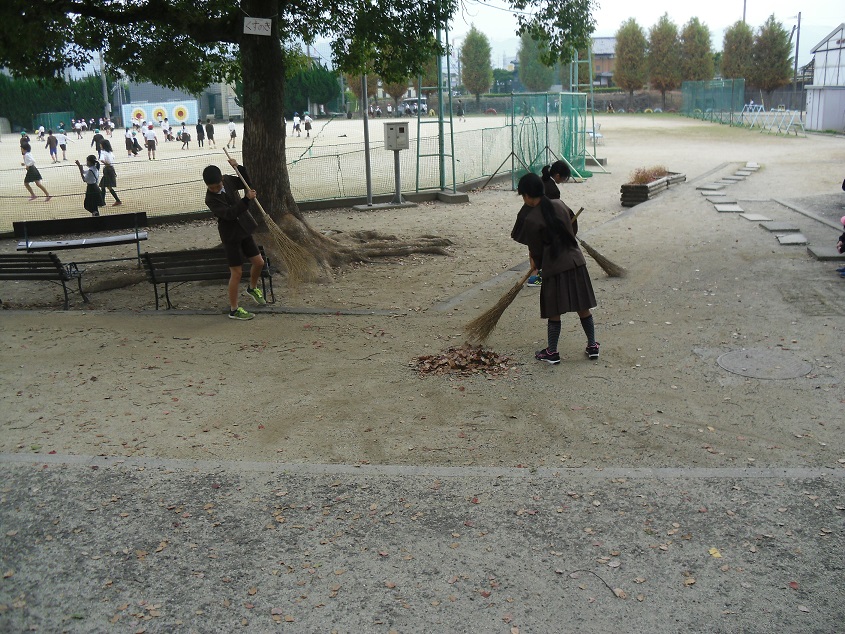 昼休みに運動場を見ていると、体育委員の子どもたちが落ち葉集めをしていました。昼休みに遊びたいでしょうが、それでも自分の仕事に責任をもってがんばっていることがとてもすばらしいです。