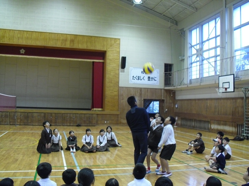 チームでアンダーやオーバーパスの練習をしました。先生方の話では、パスが続くようになってきたそうです。