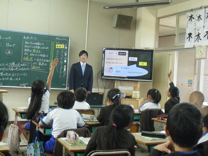 今日の合い研は、3年生の理科の授業でした。単元は「日向と日陰の地面の様子」です。