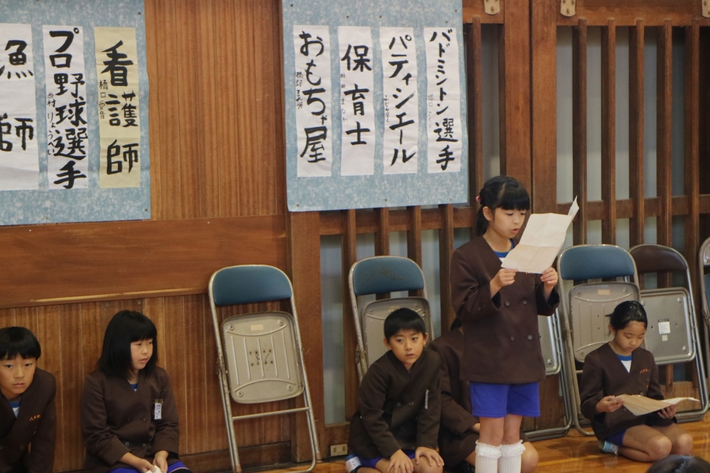 プレゼントをいただいた後は、4年生一人一人が「将来の夢」を発表しました。
