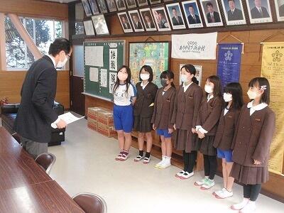 今日は、八千把クラブのバレーボールクラブ4年生が優勝したので、校長室で表彰がありました。