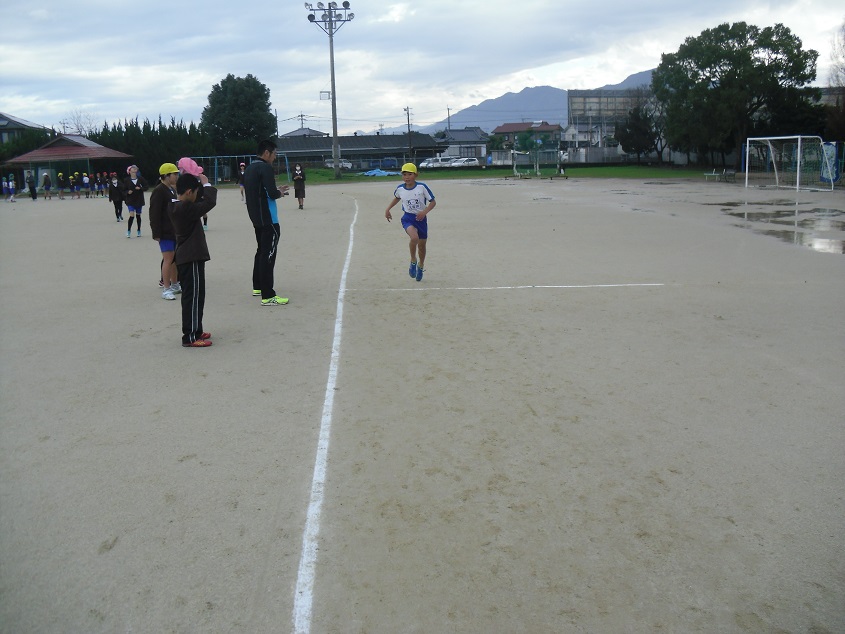 2時間目に、5年生の持久走大会がありました。昨日の雨で、運動場は少し水がたまっているところもありましたが、朝から5年部の先生方が整地をして大会が実施されました。大会が始まる頃には、薄日が出てきました。
