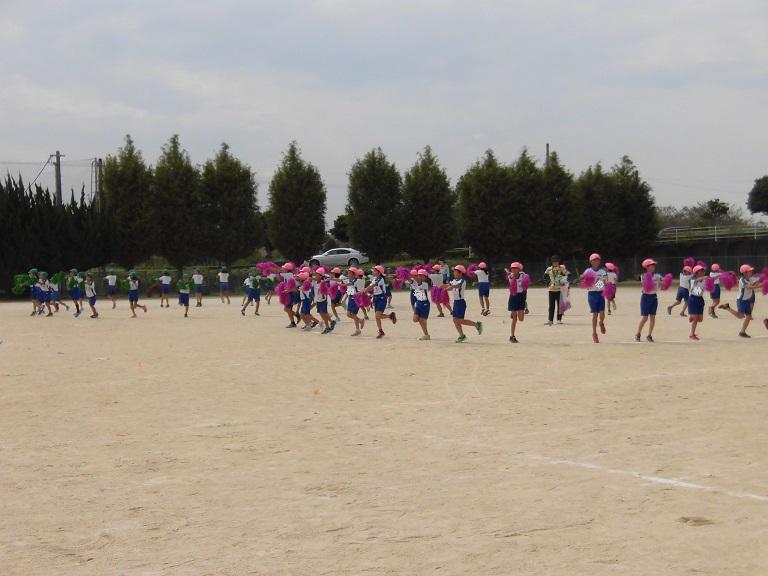 「もえろ赤団 かがやけ青団 勝利にむかって つっぱしれ」