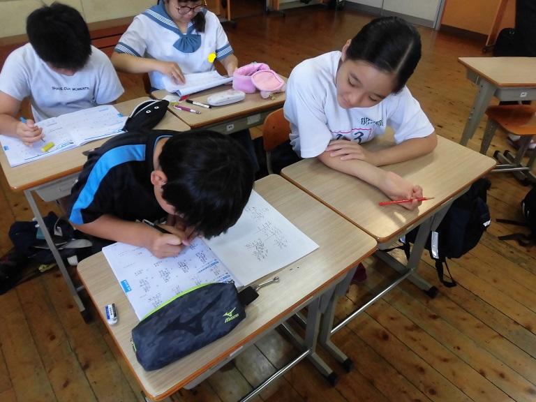本日は算数教室2日目でした。昨日と同様に子どもたちは集中して学習することができました。教えてくれる四中生は昨日より増え、12名参加してくれました。