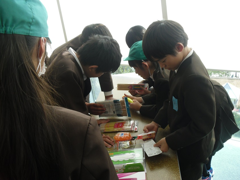 講話の後は、エコ商品を選んでいました。身の回りにはたくさんのエコ商品があることに気付きました。