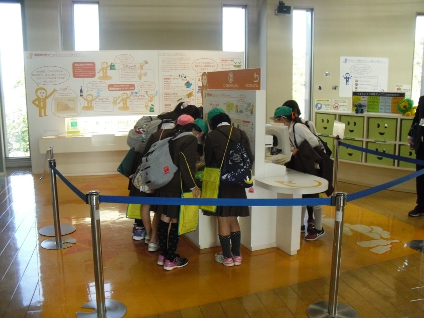 環境センターの展示物で、環境について体験しているところです。