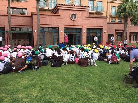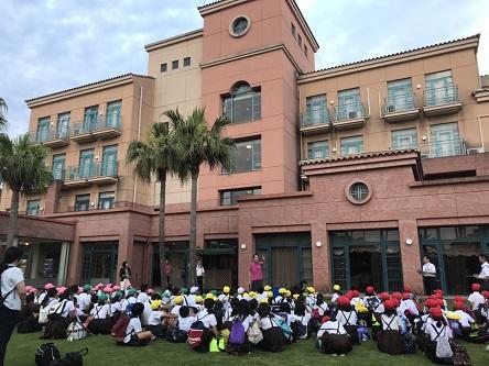 1日目の学習を終え、ホテルに到着しました。素晴らしい学習態度で、たくさんお褒めの言葉をいただきました。今日お世話になるホテルは、結婚式会場としても有名な「西海橋コラソンホテル」です。豪華な夕食と広い大浴場、快適な部屋での就寝など、たくさんの思い出がホテル内でもできることと思います。