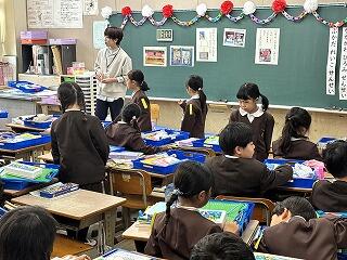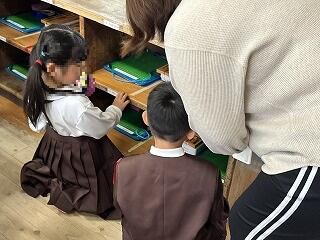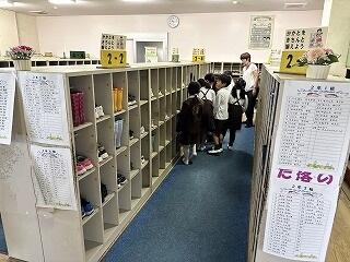 実際に靴箱で靴の入れ方を確認しているクラスもありました。