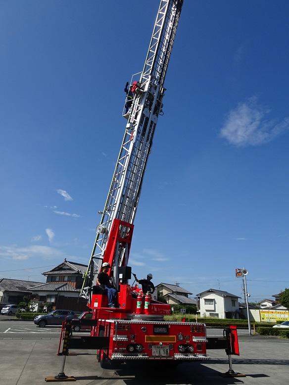 本日、本校消防クラブの子どもたちは「少年消防クラブ研修会」に参加しました。大村町にあります八代広域行政事務組合消防本部にて実施され、全体で約50名ほどの子どもたちが参加し、様々な消防活動の体験をしました。主な体験内容は「はしご車搭乗体験」「放水体験」「119通報体験」「消火体験」「濃煙体験」でした。とくに「はしご車搭乗体験」では、かなりの高さまで乗せていただけたことで、消防士の方々の活動をしっかり経験できたことと思いました。今日の体験をもとに、日頃の防災意識をさらに高め、2学期のクラブ活動を通して本校全体に広めてほしいと思います。