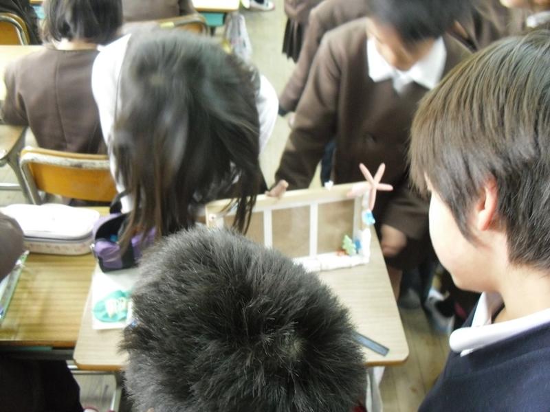 3年生は、上級生が作ったフォトフレームを食い入るように見ていました。