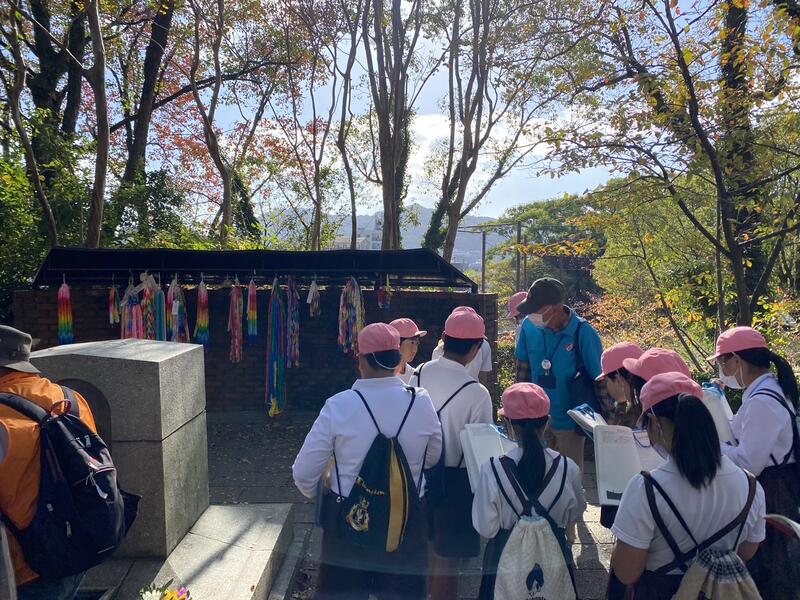 長崎さるくガイドさんに案内していただきながら、長崎市内の原爆の被害や戦争当時の様子が分かる場所等を歩いて見学しました。長崎さるくガイドさんには、それぞれの場所についての詳しいお話もしていただきました。