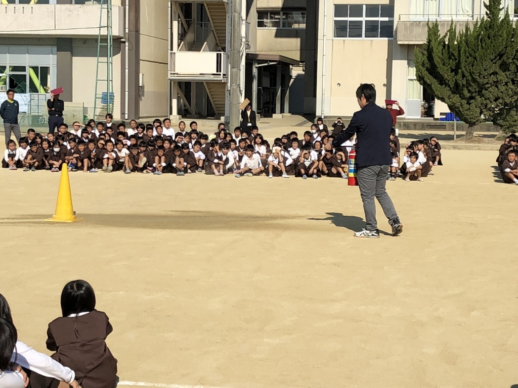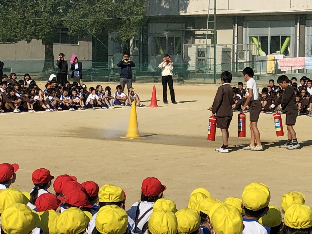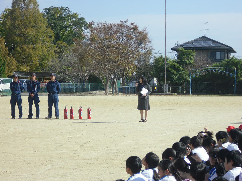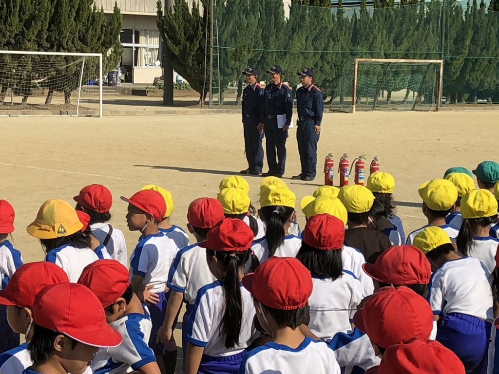 約800人の子どもたちが、一斉に避難することは大変なことです。しかし、本校の子どもたちは「おはしも」の(お:おさない は:走らない し:しゃべらない も:戻らない)約束をきちんと守り避難することができたので、消防士さんからほめてもらいました。