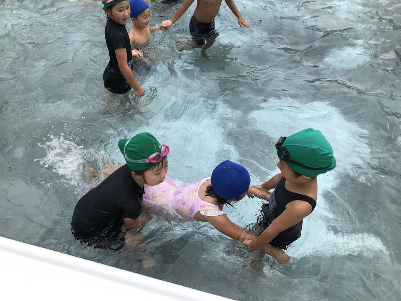 本日は、「やちわっ子の会」の一貫としてプール交流を実施しました。「やちわっ子の会」とは、第四中学校区内のこども園、保育園、小学校、中学校の円滑な連携を目指して、各学校園の交流や幼児・児童・生徒の情報を交換する会です。今回は2年2組・3組の児童と園児との交流会で、25名の園児が本校プールに来てくれました。2年生はお兄さん、お姉さんとして大いに活躍している姿がありました。優しく手をさしのべたり、笑顔で話しかけたりする姿は、とても清々しく見えました。本校プールを初めて見た園児は「大き~い。」「水族館みた~い。」「深そう~。」と様々な感想を口にしていました。プールに入ると一緒に歩いたり、水をかけ合ったりと楽しく交流ができていました。