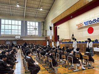 6年生の歓迎の言葉では,代表児童が「一緒に思い出を作りましょう。」と話してくれました。