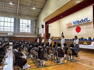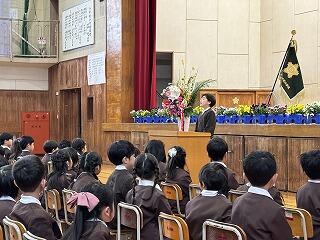 校長先生からは学校で頑張ってほしい3つのこと、①「すすんでなんでもやること」②「げんきなあいさつ・へんじ」③「ともだちとなかよくすること」についてのお話がありました。