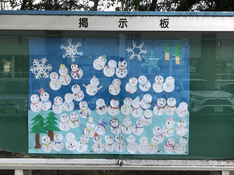 子どもたち作成の雪だるま。素敵な飾り付けでほっこりしました。