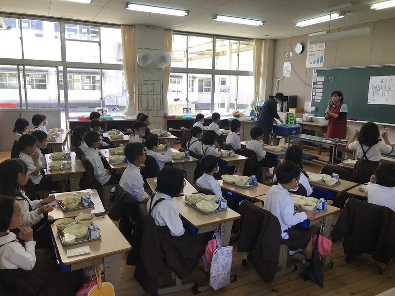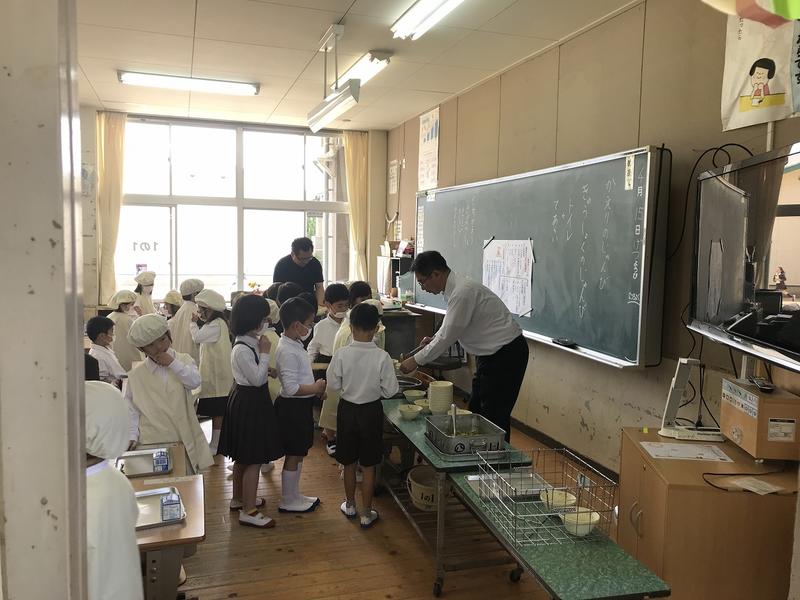 給食着に着替え、給食受け庫で「1年4組いただきます。」と大きな声が聞こえました。