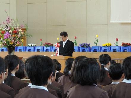 6年生代表によるお迎えの言葉がありました。とても分かりやすい内容で、聞き取りやすく発表してくれました。