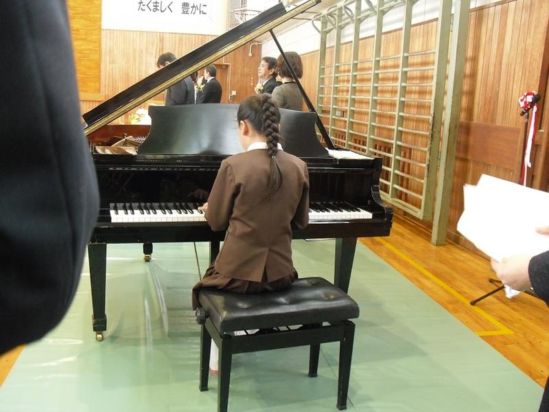 お別れの言葉の中の式歌は、代表の子どもたちの伴奏でした。どの曲もよく練習して、歌いやすい伴奏でした。