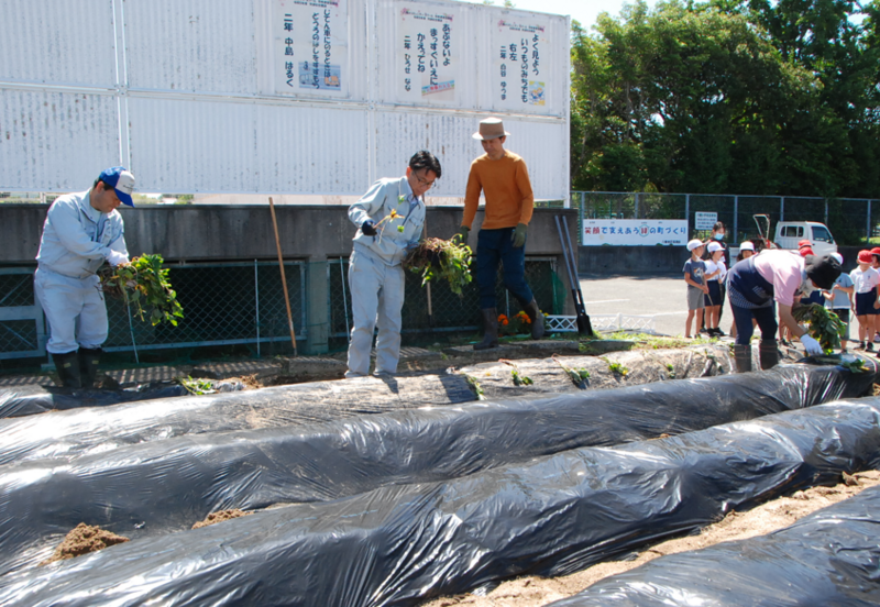 本日は休日にもかかわらず、PTA本部役員の皆様や地域の方々にさつまいもの苗植えのための畝づくりとマルチはりをしていただきました。ありがとうございます。苗植えは5月28日(火)の予定です。2年生が生活科の学習で行います。子どもたちも楽しみにしているようです。