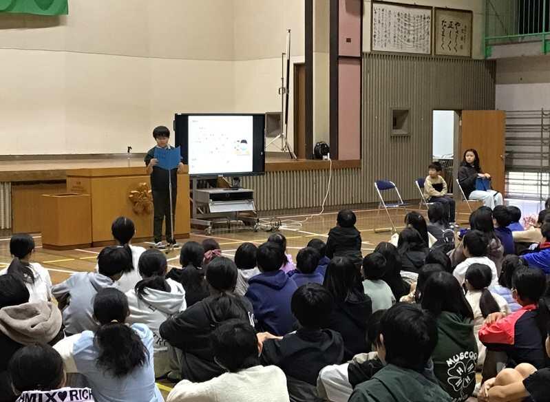 高学年・中学年でそれぞれ人権集会が行われました。各学級の代表児童が人権学習を通して学んだことを自分の経験と重ねて発表しました。みんなの前で自分のことを伝えることはとても勇気のいることです。発表者以外の子どもたちは真剣に耳を傾け、発表者の思いに応えようと、心を込めたお返しを伝えることができていました。全ての発表に共通してた事は「言葉」です。言葉は人を元気にする力もありますが、使い方によっては人の心を傷つけ、悲しませることにつながることもあります。日頃、友達や家族との会話の中で使っている「言葉」について振り返るよい機会になりました。