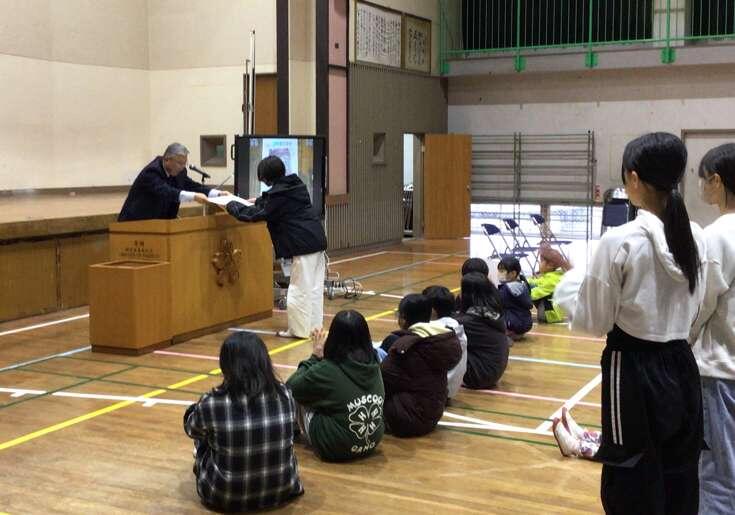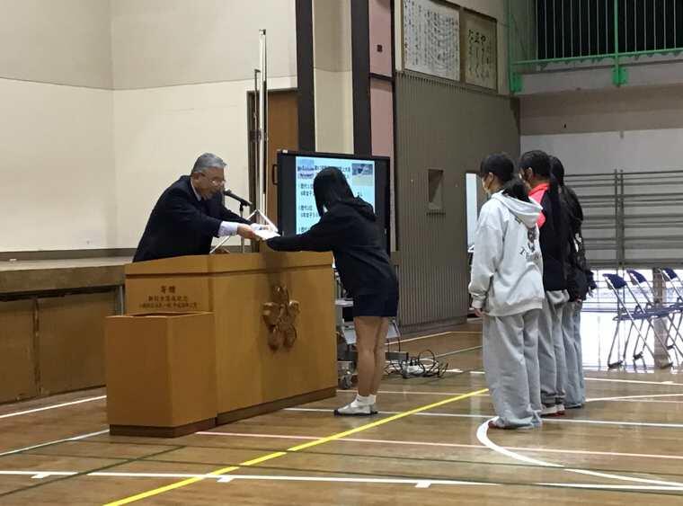 今日で後期前半が終了しました。この期間は修学旅行・見学旅行、陸上記録会など様々な行事がありました。多くの事を学び、思い出もたくさんできたことと思います。今日は、冬休み前集会で1年の振り返りと新年に向けての作文発表や校長先生からのお話がありました。また、様々なコンクール等で入賞した児童の表彰も行いました。明日から13日間の冬休みです。しっかり計画を立てて有意義なものとしてほしいと思います。また、感染症などの病気の予防と絶対に交通事故にあわないよう交通ルールや学校のきまり守るようご家庭でもお声掛けをお願いします。よいお年をお迎えください。