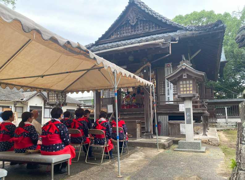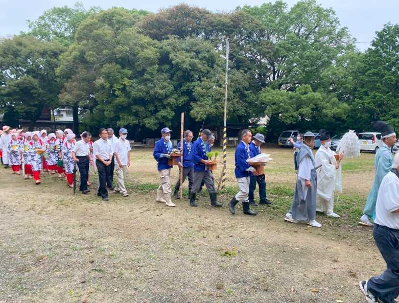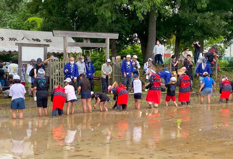 野原八幡宮の御田植祭は1975年から始まった神事で五穀豊穣を祈願する祭りです。神事のあと、境内にある水田でかすりの着物にすげがさ姿の早乙女さんたちが、歌姫さんの田植え歌に合わせて、お米の苗を手植えします。5年生も少しだけ体験させてもらいました。田植えは初めての子がほとんどでしたが、真剣に丁寧に苗を植えることができました。地域の方もたくさん見学されており、子どもたちが生き生きと参加している様子をとてもうれしそうに見ておられました。