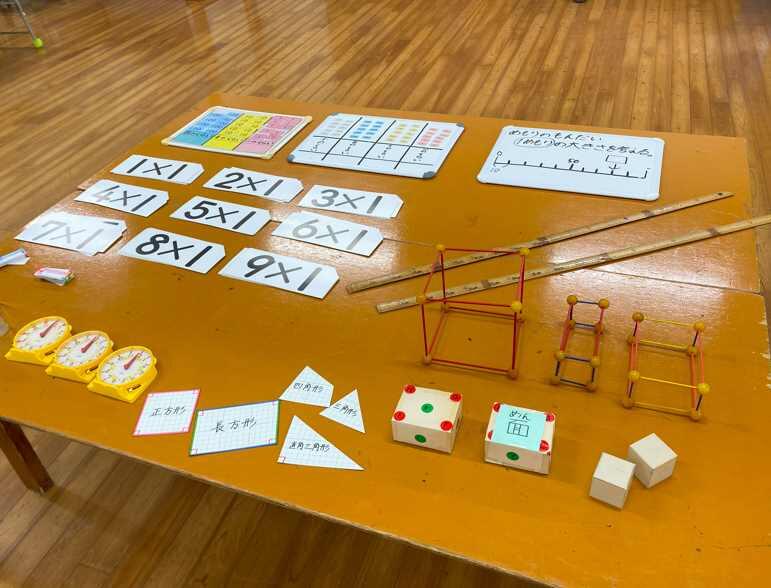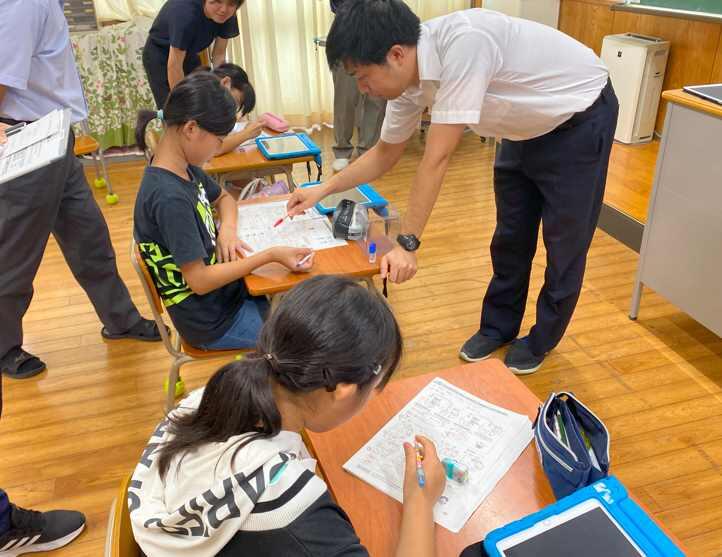 6年生の算数の授業でした。それぞれが、自分が苦手としている単元の中から学習したい内容を自ら選択して取り組む学習でした。自ら選択した内容ですので、学習意欲も高まります。課題解決に必要な道具も自分で選択しながら、真剣に課題に取り組む様子がありました。子どもたちが主体的に学び、しっかりとした学力を身に付けることができるよう工夫された授業でした。