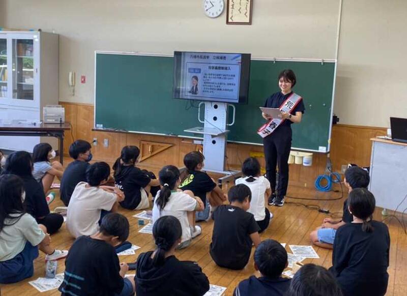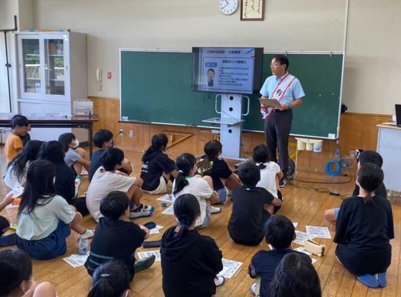 荒尾市の選挙管理委員会の方ゲストティーチャーとしてお招きし、選挙出前授業をしていただきました。模擬選挙に使われた投票用紙等の道具を実際の選挙で使われるものと同じでした。6年生もあと6年すれば18歳となり選挙権を持つことになります。全国的に選挙への関心の低さ(投票率の低さ)が問題となっています。今のうちから選挙に関心を持ち、自分の一票が自分たちの未来の日本をつくるという意識を高めておくことが非常に大切だと思います。日頃から自分たちの市や町のよいところや課題に目を向けたり、新聞やニュースを見るようにしたりしていきたいですね。