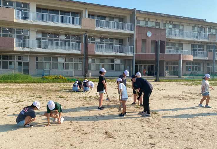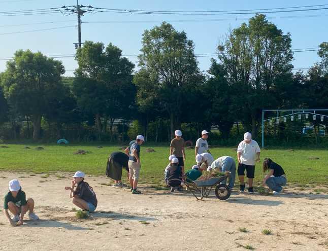 先日の台風の影響で、PTA親子美化作業が中止となってしまいました。8月末に行われた「やはたの祭り」の前に、地域の皆様のご厚意で運動場・小運動場の草を刈り取っていただいたおかげで、随分きれいになってはいるものの、子どもたちが体育の授業で使うトラックやフィールド部分にはたくさん草が目立つ状況です。そんな中、自分たちで使う運動場を自分たちできれいに整えようと5・6年生を中心に行動にうつしてくれました。朝、登校後に進んで運動場に出て作業をしてくれています。9月になったとは言え、まだまだ残暑が厳しい中、汗をたくさんかきながら頑張ってくれています。暑いですが、作業後の子どもたちの表情はとてもさわやかです。そんな子どもたちの頑張りがとてもうれしいです。このように自分たちの手でよりよい学校を創るという意識がどんどん広がっていくといいなと思います。