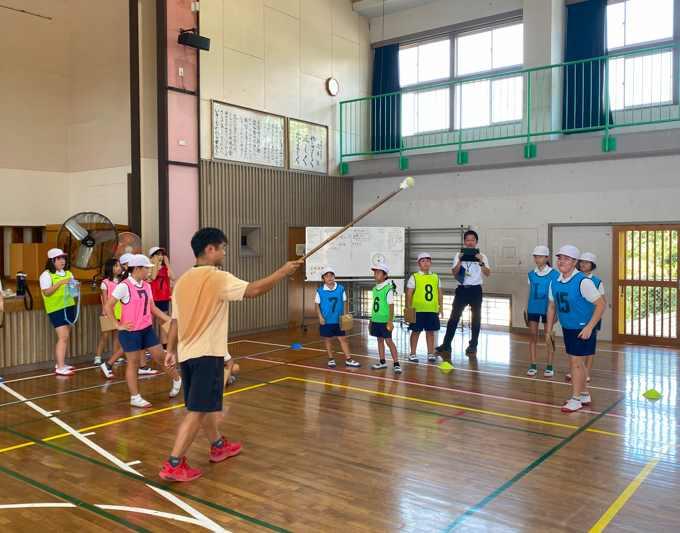 テニピンとは、テニスとピンポンを掛け合わせた、新しい運動です。ラケットは段ボール製で、野球のグローブように直接、手にはめます。コートはバドミントンコートほどの広さです。今回の授業では、相手コートに打ち返すためにはどのような動きをするとよいか、友達と思考錯誤しながら考えました。そして、打つタイミングやラケットの振り方を言語化して、ゲームを楽しみました。応援の声もたくさん聞かれました。今後、ルールもみんなが楽しめるよう簡素化するなど、子どもたちの想いを活かしながら柔軟に工夫されていくそうです。