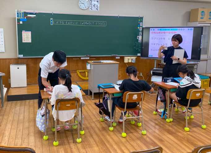 6年生の算数の授業でした。それぞれが、自分が苦手としている単元の中から学習したい内容を自ら選択して取り組む学習でした。自ら選択した内容ですので、学習意欲も高まります。課題解決に必要な道具も自分で選択しながら、真剣に課題に取り組む様子がありました。子どもたちが主体的に学び、しっかりとした学力を身に付けることができるよう工夫された授業でした。