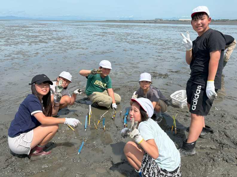 5年生がマジャク釣り体験を行いました。今週は梅雨の晴れ間でいい天気に恵まれてよかったです。荒尾漁協の方々など多くの方のアドバイスを受けながら、見事に釣り上げ、数匹ずつお土産として持ち帰ることができたようです。家庭で調理をして、感想など会話しながらおいしく食べていただきたいと思います。世界に誇る荒尾干潟での貴重な体験は、郷土を愛し、誇りに思う心をより一層大きくしたのではないでしょうか。