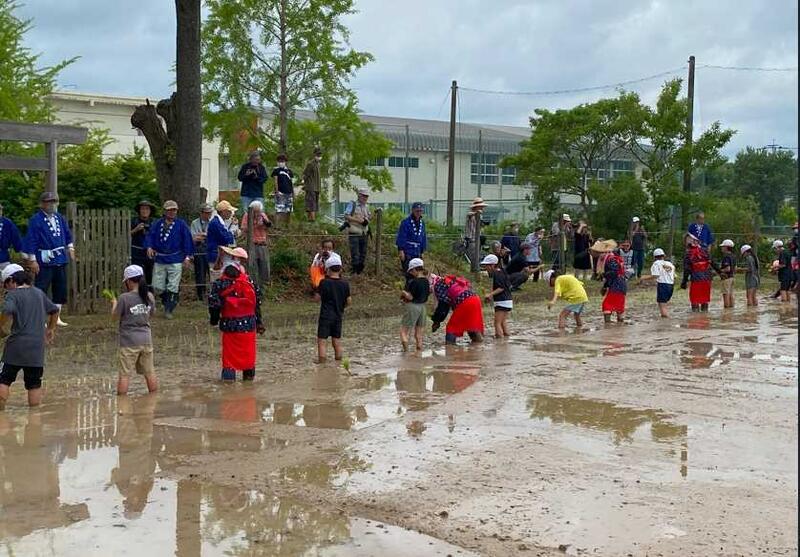 5年生が野原八幡宮の御田植祭に参加しました。御田植祭は1975年から始まった神事で五穀豊穣を祈願する祭りです。神事のあと、境内にある水田にすげがさ姿の早乙女さんたちが、歌姫さんの歌に合わせて、お米の苗を手植えします。5年生は少しだけ田植えを体験させていただきました。田植えは初めての子がほとんどでしたが真剣に丁寧に苗を植えることができました。地域の方もたくさん見学されており、子どもたちが生き生きと参加している様子をとてもうれしそうに見ておられました。