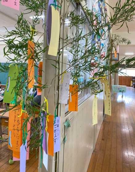 今日から7月です。今年は6月に梅雨明けし、異例の暑さが続いています。七夕ごろはいつも梅雨時期で天の川を見ることが難しいのですが、今年はみることができるかもしれませんね。いろいろな学年の教室に七夕かざりがかざってあります。子どもたちは自分のことだけでなく、家族のことを思った願いごとなどをたくさん書いています。今週の授業参観の折などにご覧になられて下さい。