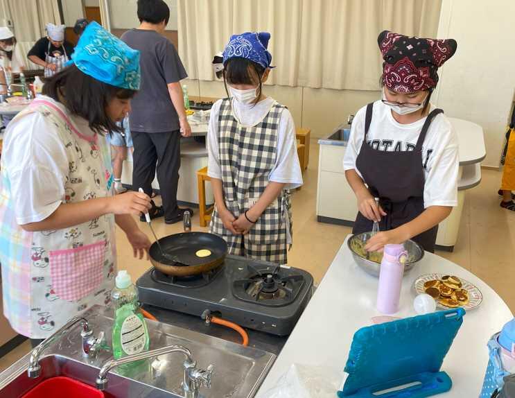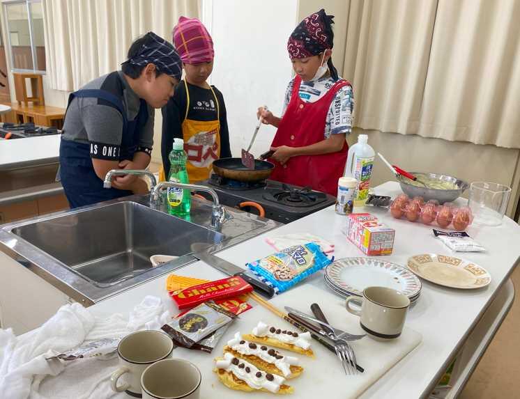 6年2組の子どもたちが「炒める」をテーマに調理実習を頑張っていました。野菜炒めを試食させてもらいましたが、しっかり火が通っており、味付けも上手でとてもおいしかったです。野菜炒めの他にもホットケーキやハムのチーズ巻きなど友達と協力して楽しみながら調理していました。