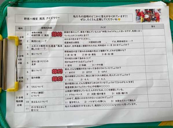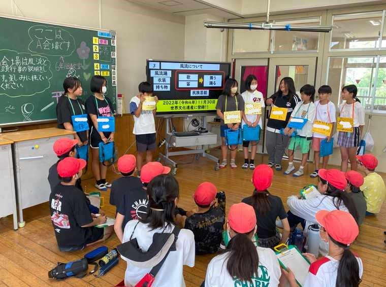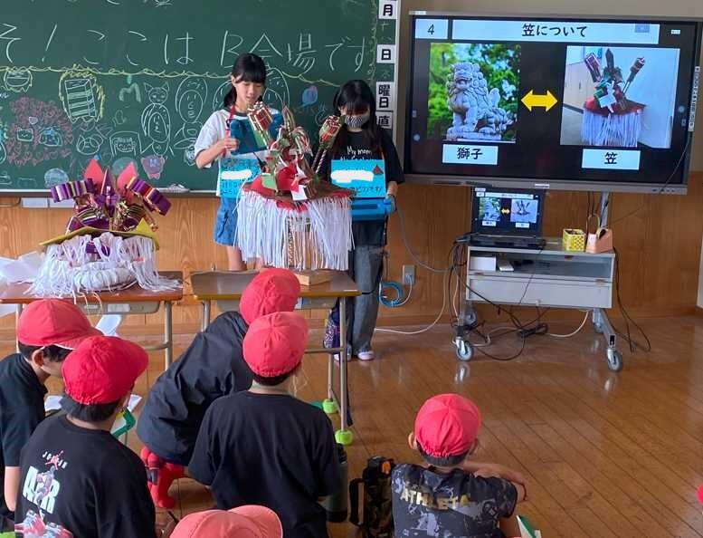八幡小と同じく校区に世界遺産をもつ万田小の6年1組に野原八幡宮の風流ガイドを行いました。6年生になった時に地域の宝である風流のガイドができるよう4年生から段階的に学習を進めてきました。今回が初めてのことでしたので、うまくできた部分とそうではなかった部分があるかと思います。来週は万田小の6年2組にもガイドを行います。これから対象を変えて何度もガイド活動を行いますので、少しずつ要領を得て上手になっていくのではないかと思います。頑張ってください。