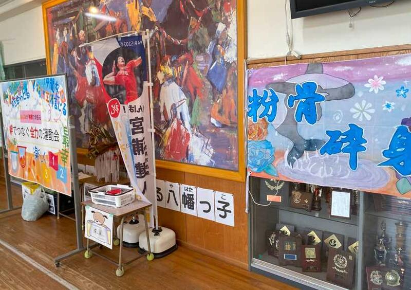 運動会の練習も仕上げの段階に入ってきました。かけっこ、リレーのバトンパス、踊りの練習に益々熱が入ってきています。今日は全体練習もあり、開閉会式と応援練習を行いました。開閉会式も児童の活躍の場がたくさんあります。6年生が製作した赤白それぞれの応援旗も運動会の雰囲気を盛り上げてくれています。